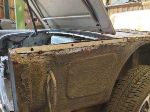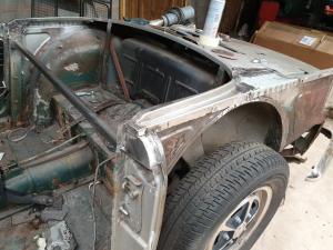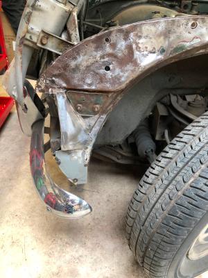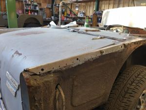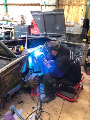 Front inner wing exposed for welding work.