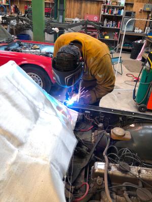 Another repair section tacked in place to ensure correct positioning before committing to weld.