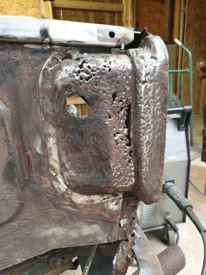 Rear seat pan requiring repairs.
