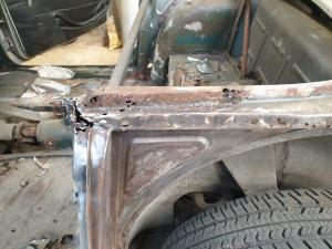 Left side top deck and B panel post before repairs.