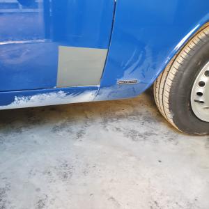 Small door repair completed and put into primer ready to go to the paint shop to have the colour matched and blended in.