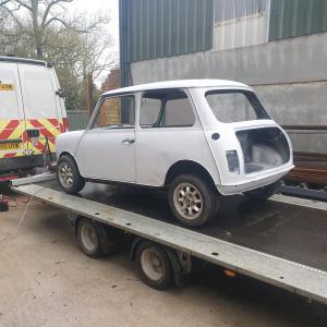 The Mini all in primer and on the trailor ready to go home to a happy owner.