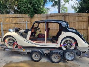 The Jaguar arriving, this was dropped off by the customer to our workshop for some minor repairs on the chassis.