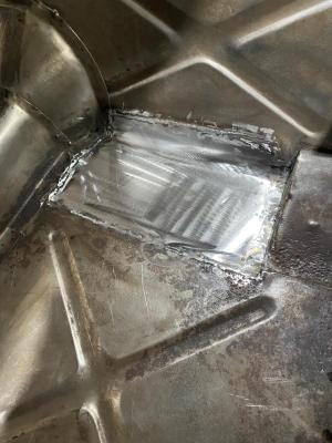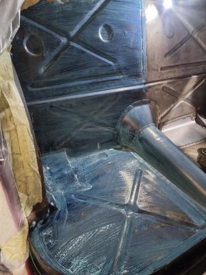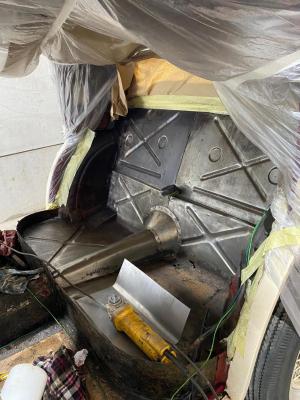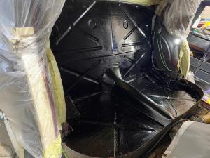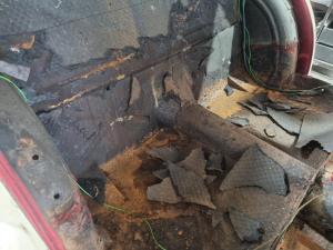 The floor pan before we completed any repairs, it was in need of some serious TLC.