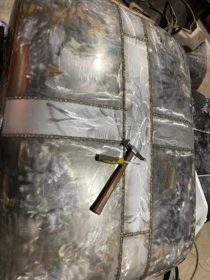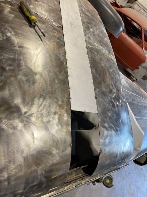 The roof repairs on the truck tacked in place to ensure the placement is correct before committing to weld.