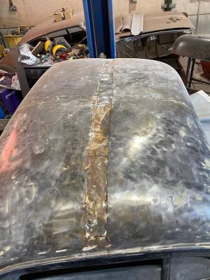 The roof repair completed and welds ground down.
