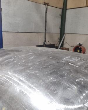The truck getting a step closer to its new paint job with more filler work being done.