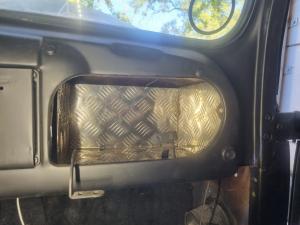 We lined the glove box with aluminium checker plate to give it a neat finish as it was previously in a poor state.