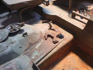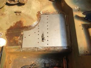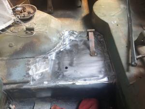 The repair section all welded in place with the welds ground down to create a nice flush fit in the floor.